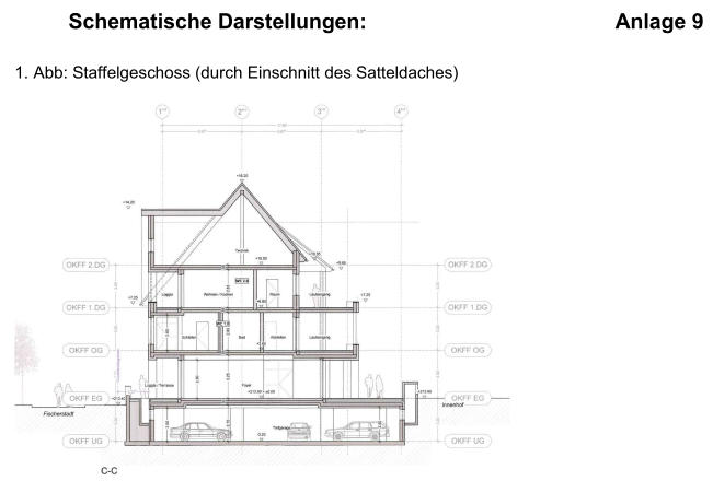 In der Anlage 9 des Bauantrages wird sogar explizit aufgezeigt, dass man Staffelgeschosse errichten wird.